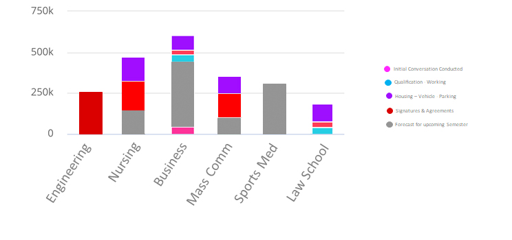Your admissions pipeline can be a completely automated. As you move each student through your process any outbound communication such as; emails, texts or voice announcements can be automatically dispatched as you move them from stage to stage. Everything can be managed from this Kanban chart, including tracking all inbound revenue totals.